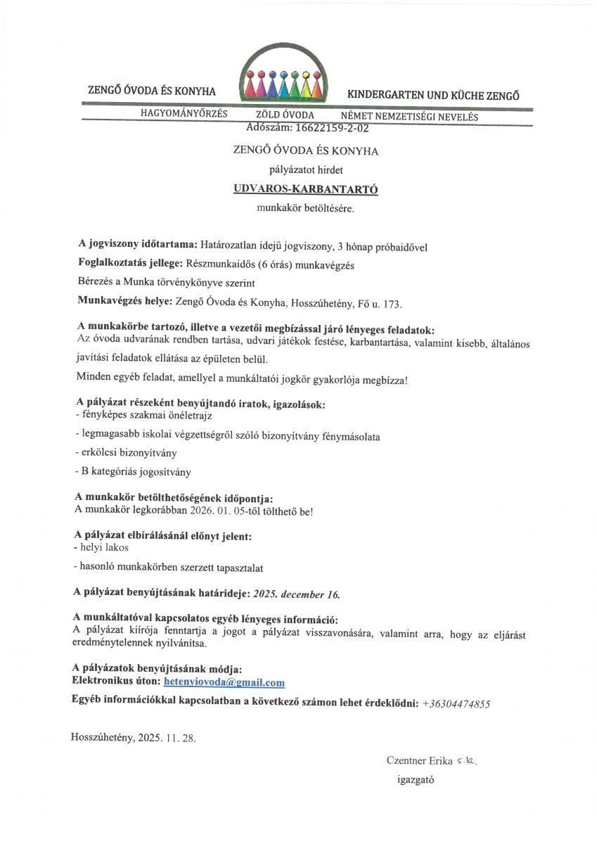 Udvaros-karbantaró álláshirdetés